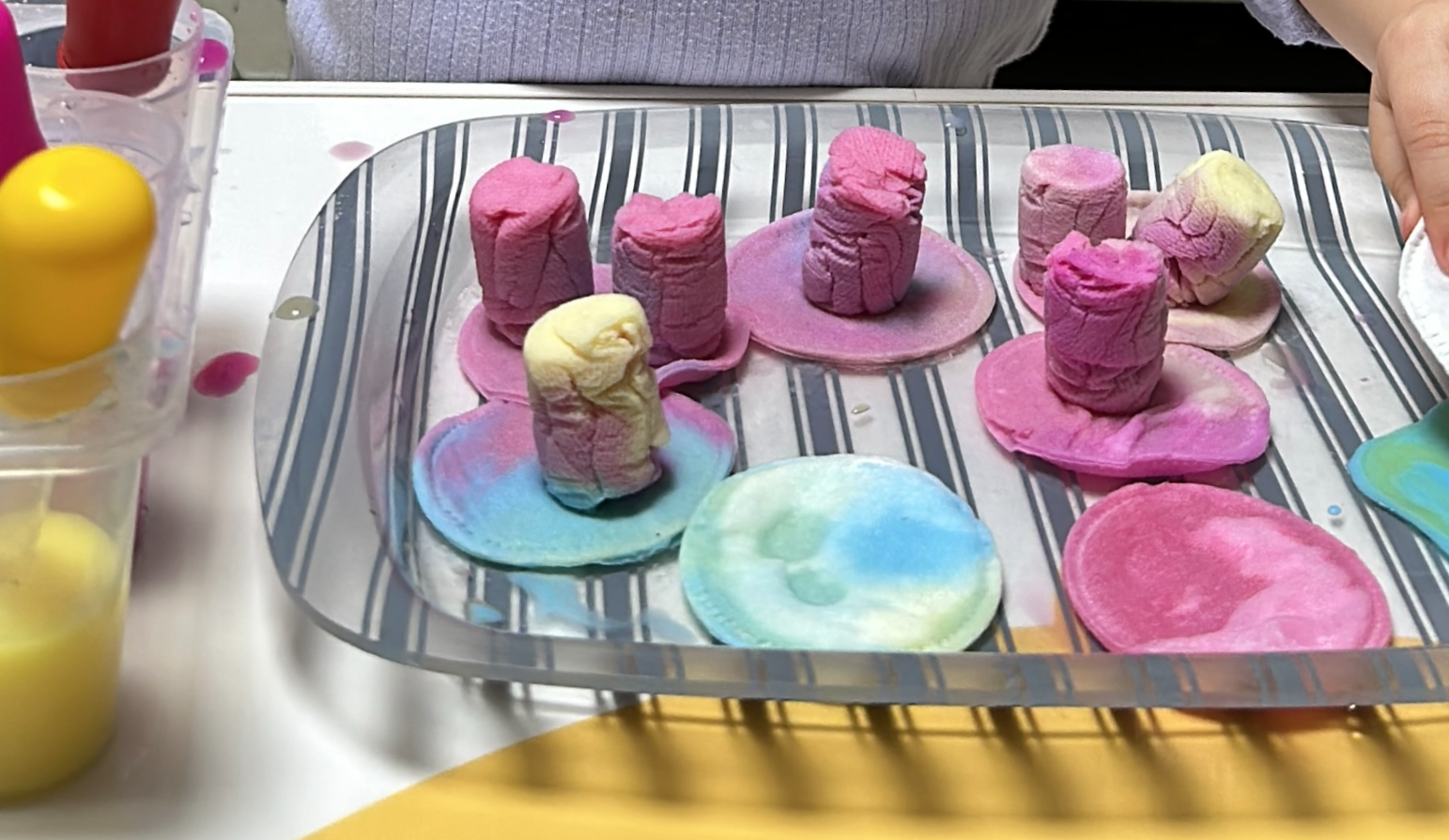 화장솜과 코인티슈에 스포이드를 이용한