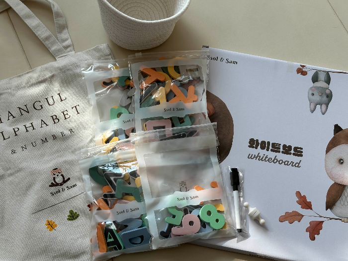 한글 숫자 원목자석과 바구니, 가방까지 포함이다.
