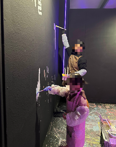 벽, 바닥 어디든 페인트로 그리고 칠해보면서 내 마음대로 생각을 표현할 수 있다.