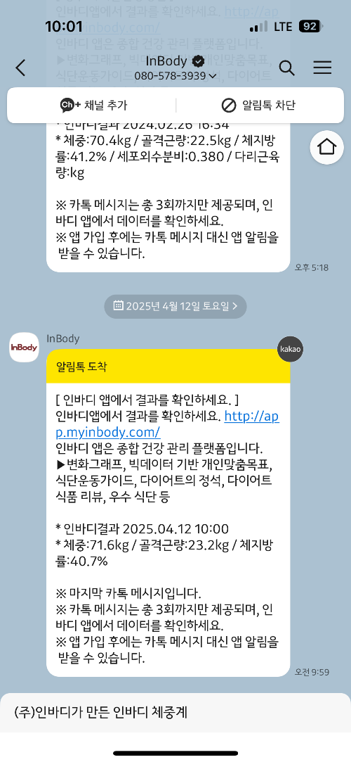 인바디 결과를 카톡으로 받았는데