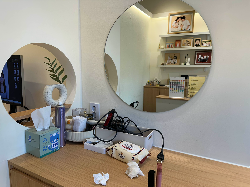동남지구 키키사진관에서 아이 여권사진도 촬영을 했었어요. 썩 마음에 들진 않았지만 가까운 사진관이 여기뿐이라서 방문하게 되었습니다. 사진찍기 전에 얼굴상태를 확인할 수 있도록 거울과 머리끈 등이 준비되어 있어요.
