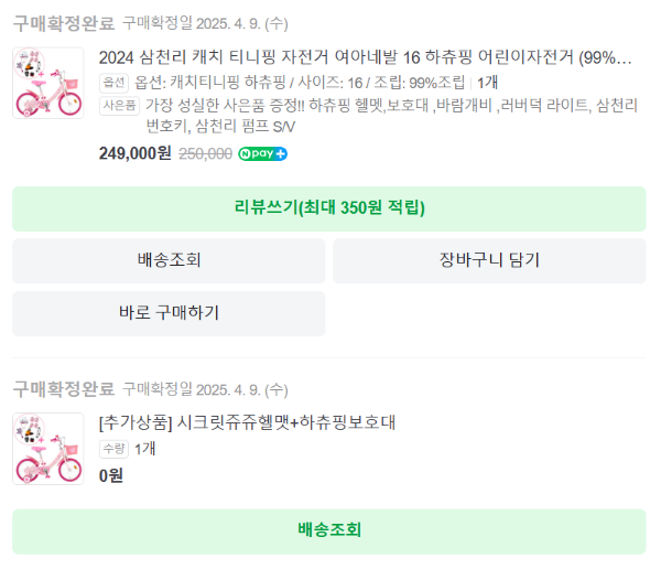 - 제품명: 삼천리 티니핑 자전거