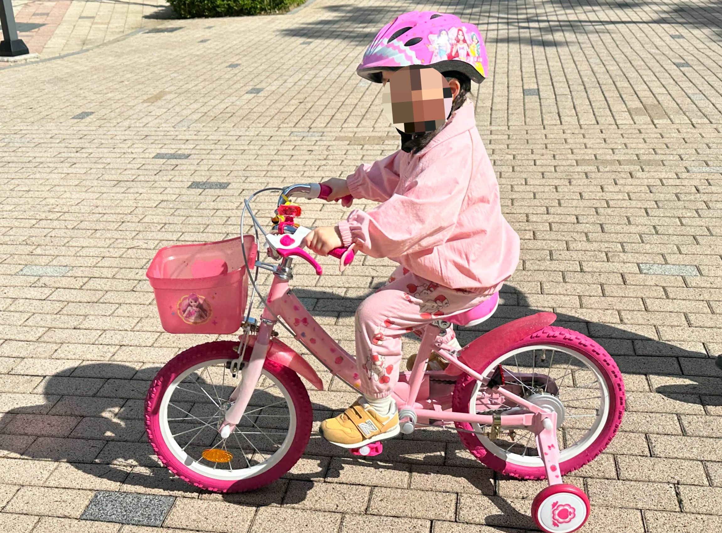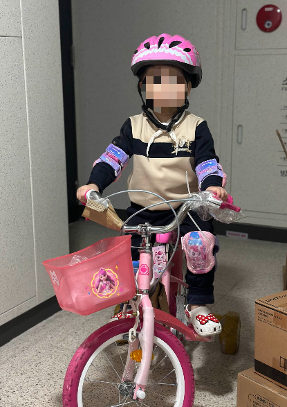 좋아하는 핑크핑크한 하츄핑 자전거를 직접 마주하니 엄청 좋아하더라고요.