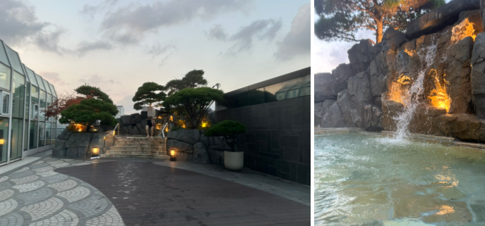 해가 지면서 쌀랑해졌지만 야외 자쿠지도 이용해보았다.