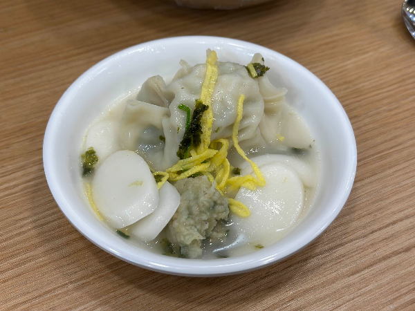 만둣국에는 굴림만두와 고기만두가 들어있다.