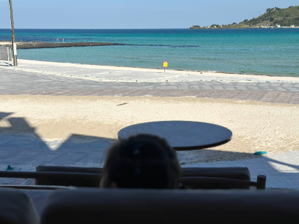 • 아침: 조용하고 맑은 바다, 호텔샌드 커피 타임