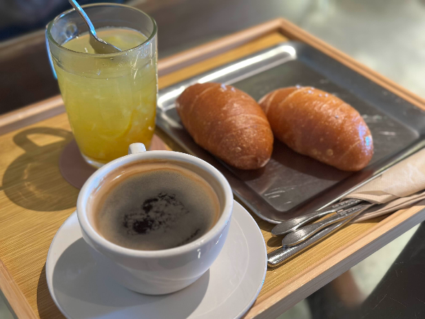 따뜻한 아메리카노와 소금빵을 먹었어요.
