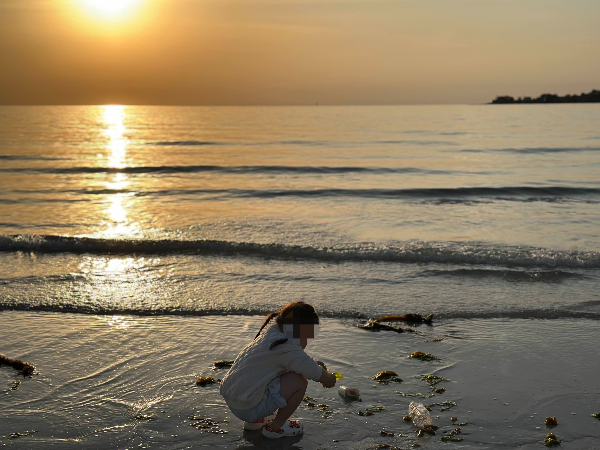 아이랑 모래놀이도 하고 발 담그면서 여유롭게 시간을 보냈어요.
